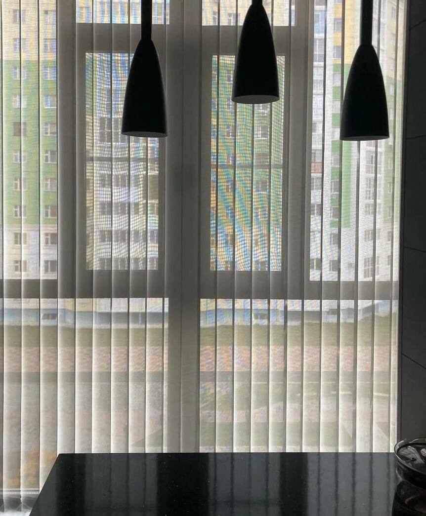 Вертикальные жалюзи — отличный выбор для больших окон и офисов. Они хорошо регулируют свет, визуально вытягивают помещение и просты в уходе.